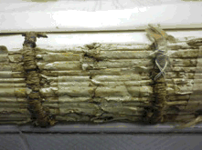 3. Restauración del papel del cuerpo del libro o bien en seco o con humidificación, proporcionándoles aplanamientos, injertos y refuerzos varios, según las necesidades.