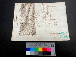 - Se han consolidado las esquinas y reintegrada las pequeñas faltas con papel japonés. Posteriormente se reintegra cromáticamente con acuarelas.