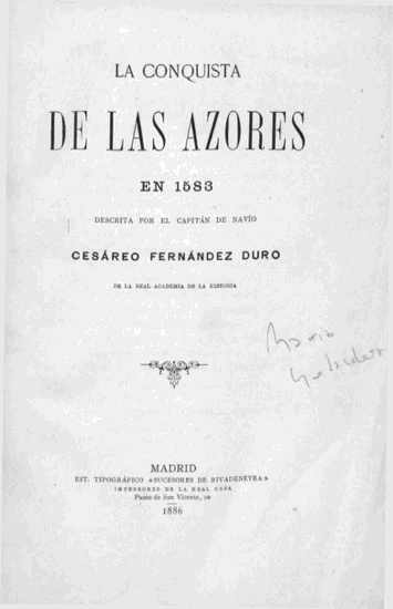 5. Cesáreo Fernández Duro. La conquista de las Azores, Pag 296.