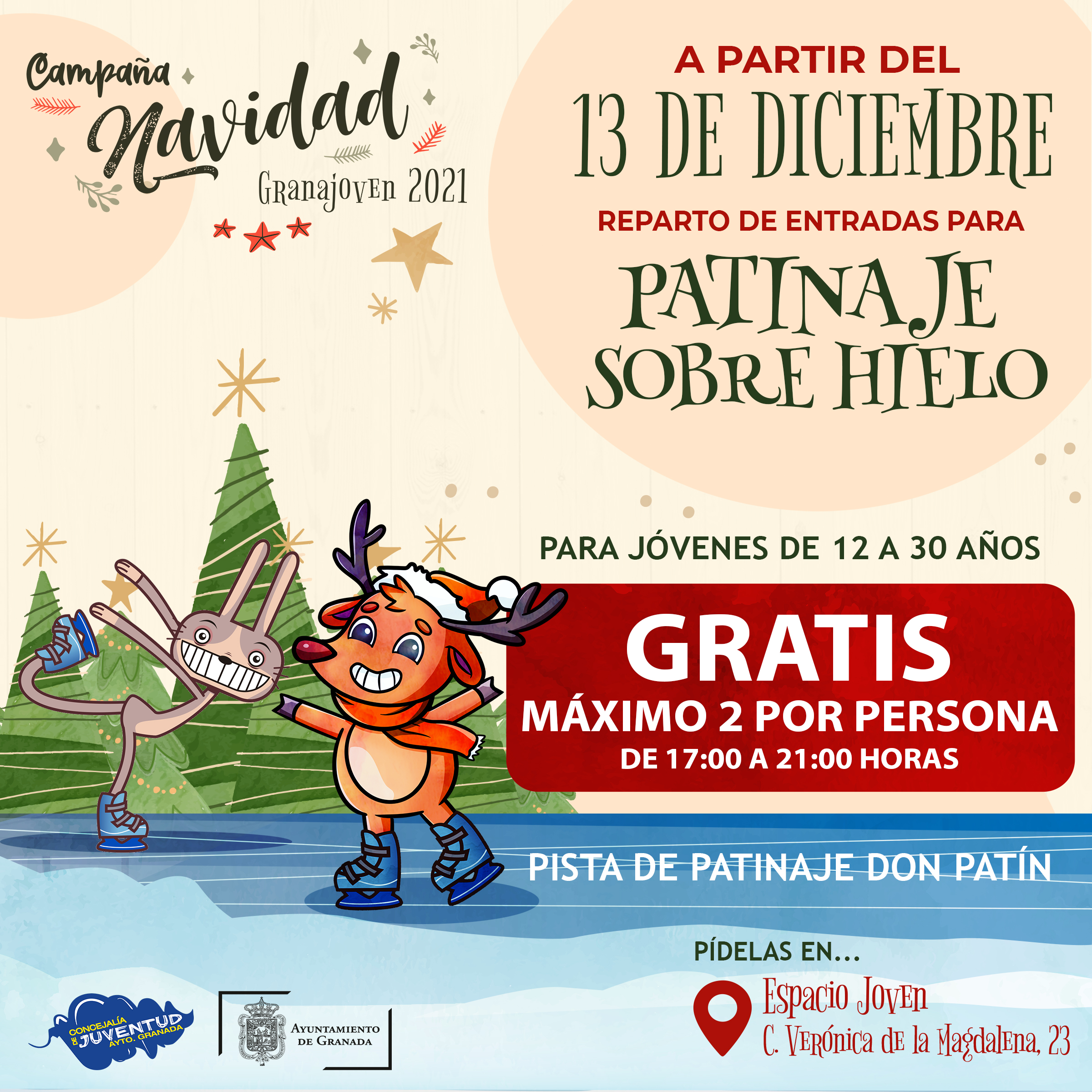 Si quieres patinar esta navidad, pásate por el ESPACIO JOVEN de lunes a viernes en horario de tarde - 17:00 a 21:00 h y recoge una invitación para la Pista de patinaje sobre hielo Don Patin.