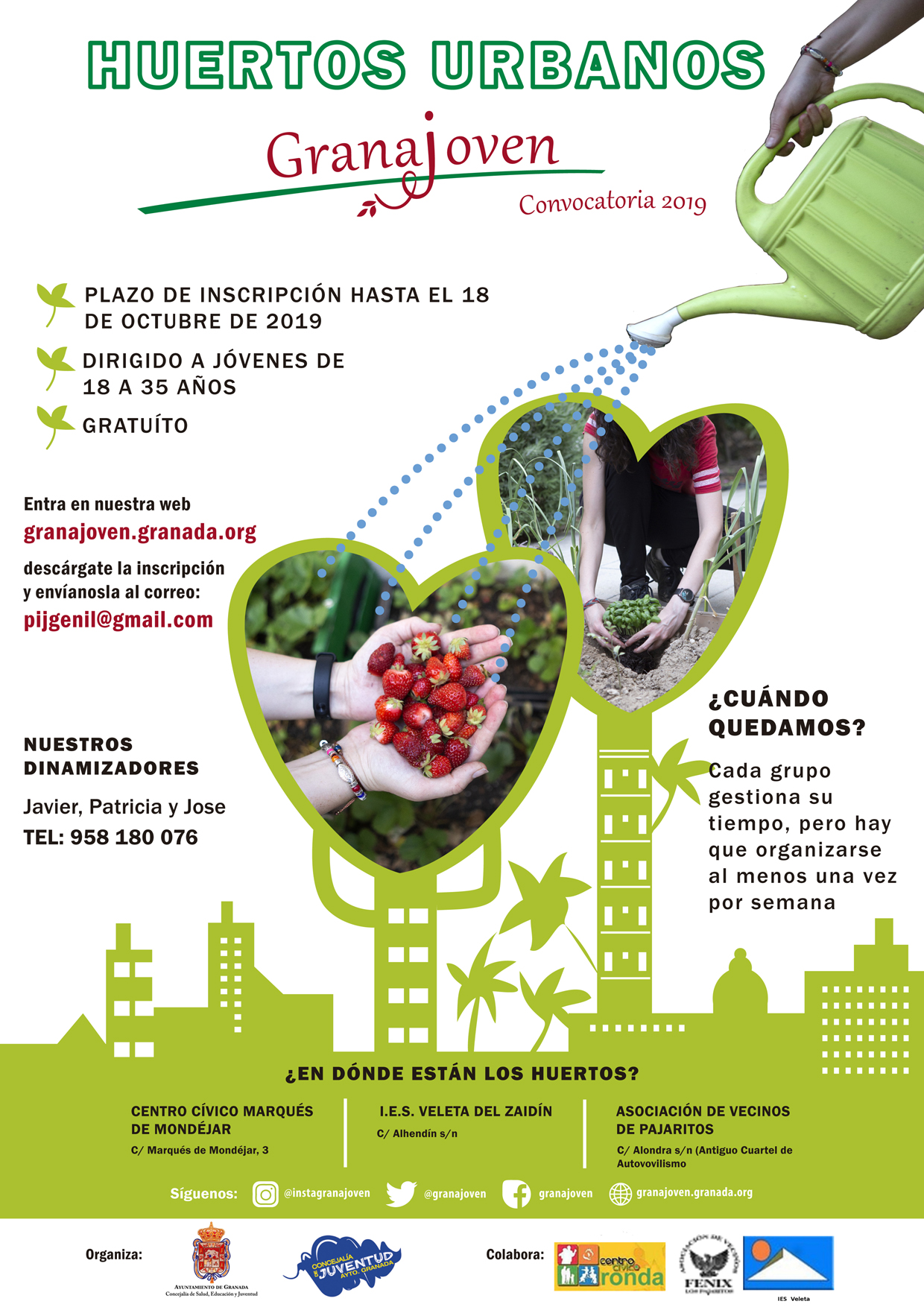 De nuevo esta temporada 2019-2020 os proponemos inscribiros en los huertos urbanos que la Concejalía de Juventud tiene en Granada para la población joven.