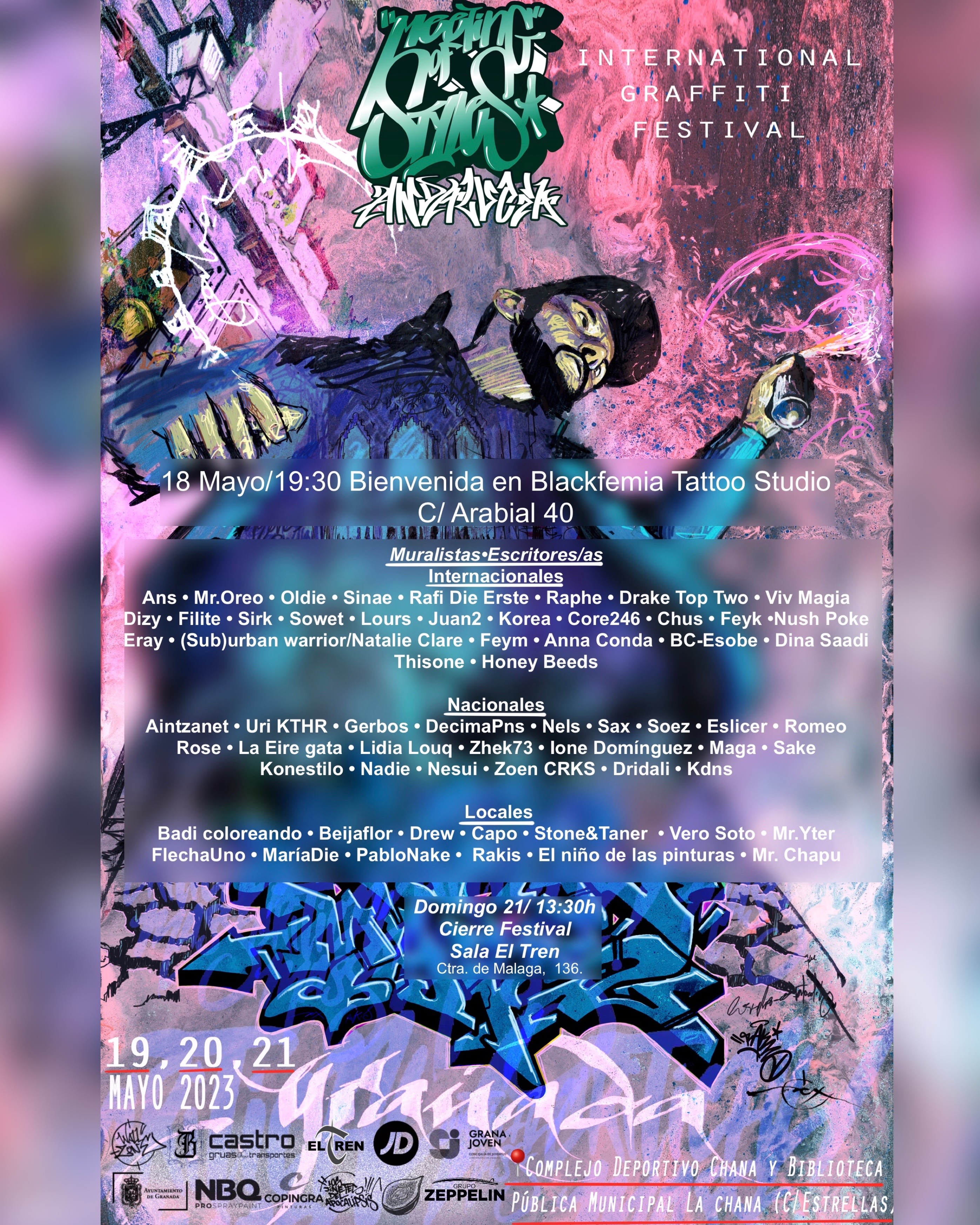 Meeting of Styles es una Fundación Internacional formada por artistas amantes del graffiti que ha patrocinado la creación de murales en más de 60 países de diversos continentes y entre ellos España. El propósito de estos eventos es promover y legitimar el graffiti como arte, y también, el trabajo de las personas que lo realizan.Del viernes 19 al domingo 21 de mayo Granada será, por primera vez, sede mundial de uno de los grandes encuentros culturales internacionales centrados en el Arte Urbano y el Graffiti -Meeting of Styles-. Se contará con la participación de 60 artistas profesionales tanto internacionales como nacionales y locales que tienen un gran reconocimiento y trayectoria en el mundo del graffiti.