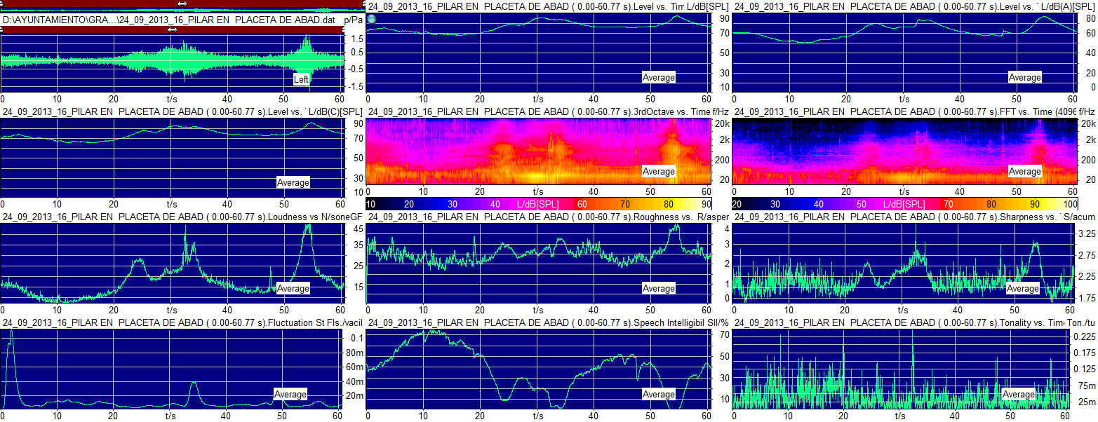 Sonoridad (sone) | Aspereza (asper) | Fuerza fluctuante (vacil) | Nivel de interferencia en la comunicación verbal (dB) |