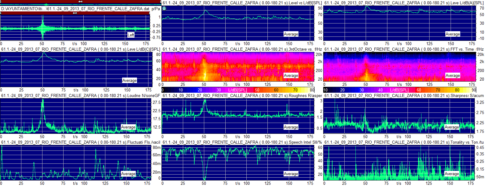 Sonoridad (sone) | Aspereza (asper) | Fuerza fluctuante (vacil) | Nivel de interferencia en la comunicación verbal (dB) |