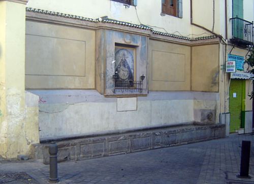 Se halla muy cerca de la Puerta de Elvira, se cree que HENRÍQUEZ DE JORQUERA se refiere a él, cuando dice: “En la plaçuela de la puerta de Elvira de la parte de adentro ay una gran pila de agua de dos caños, una del Dauro y otro de Alfacar”(1). Sobre el mismo y bajo la imagen en lienzo de Nuestra Señora de las Angustias, aparece una losa de mármol blanco con la siguiente leyenda: