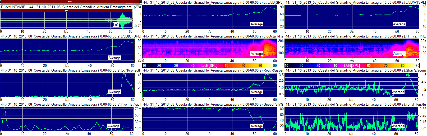 Sonoridad (sone) | Aspereza (asper) | Fuerza fluctuante (vacil) | Nivel de interferencia en la comunicación verbal (dB) |