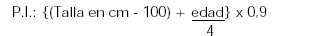 Peso no superior ni inferior al 20% del teórico ideal, calculado según la fórmula siguiente: