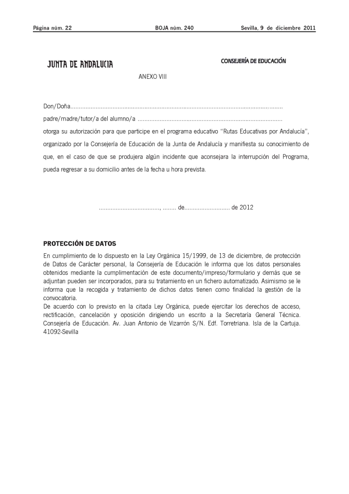 Orden de 14 de noviembre de 2011, por la que se convoca el programa «Rutas Educativas por Andalucía» para el año 2012.
