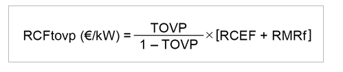 – RCFtovp = Retribución por componente fijo de la tasa de ocupación de la vía pública (TOVP), expresada en €/kW y año.
