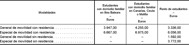 2. Las modalidades y cuantías de las becas de movilidad serán las siguientes: