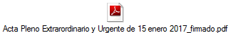 Sesión extraordinaria y urgente (a tenor de los dispuesto en el artículo 79 del Reglamento de Organización, Funcionamiento y Régimen Jurídico de las entidades locales y 105.2 del Reglamento Orgánico Municipal) que el Pleno de este Excmo. Ayuntamiento, celebró el día quince de enero de dos mil diecisiete, en el Salón de Plenos del Palacio Consistorial, a las nueve horas