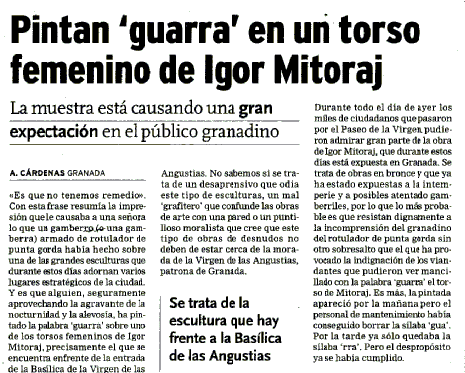Pintan guarra en un torso femenino de Igor Mitoraj