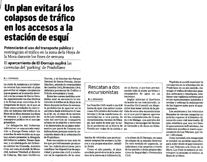 Sierra Nevada; Cetursa; Circulación; Accesos; Aparcamientos