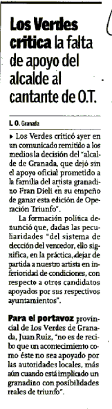 Los Verdes critica la falta de apoyo del alcalde al cantante de O.T.