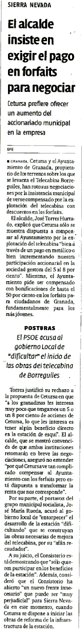 Cetursa; Alcalde; Forfaits; Negociaciones