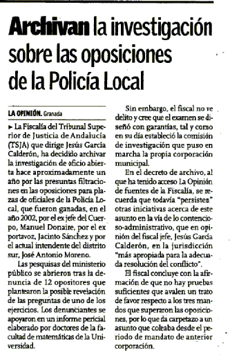 Archivan la investigación sobre las oposiciones de la Policía Local