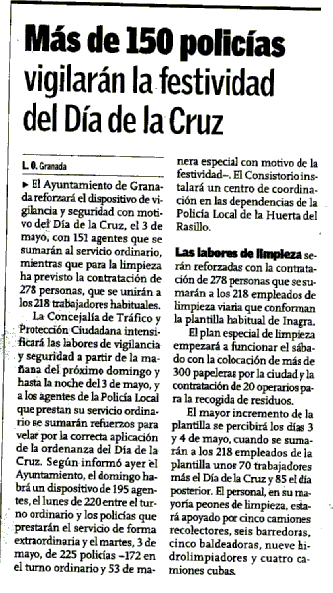 Más de 150 policías vigilarán la festividad del Día de la Cruz