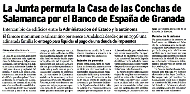 La Junta permuta la Casa de las Conchas de Salamanca por el Banco de España de Granada